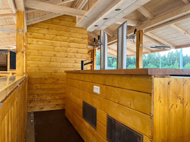 - Einer Bierzapfanlage für bis zu 4 Fässer gleichzeitig gekühlt durch einen Durchlaufkühler