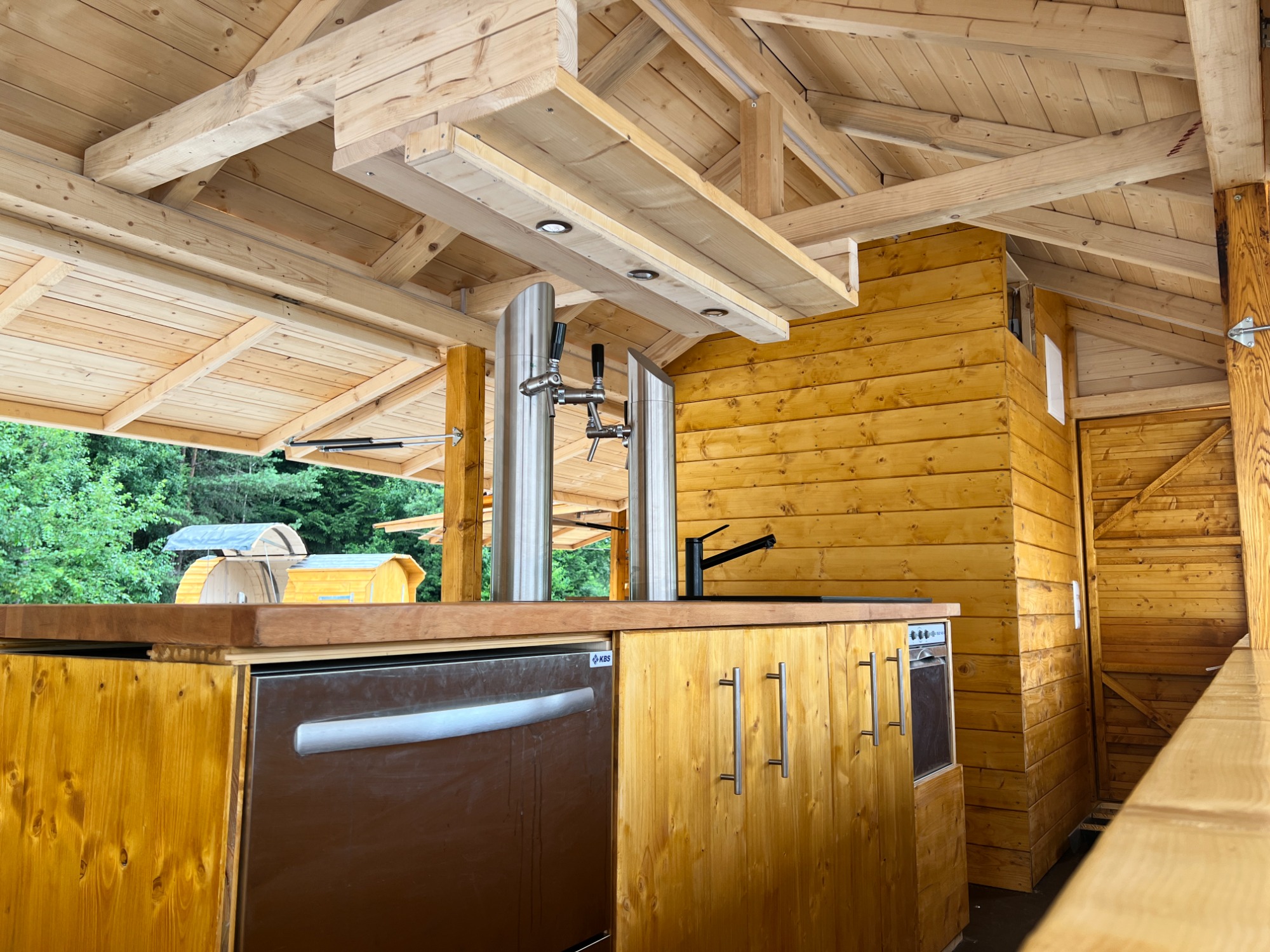 - Einer Bierzapfanlage für bis zu 4 Fässer gleichzeitig gekühlt durch einen Durchlaufkühler